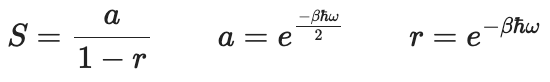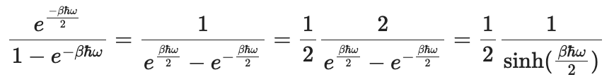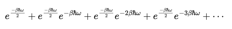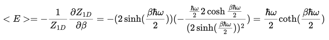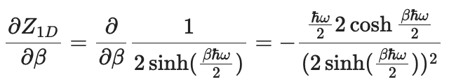 앞에서 언급한 1차원 조화진동자의 에너지 고유값 Eₙ의 식을 분배함수 Z에 넣어 얻은 결과에요.