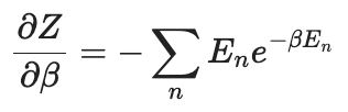 이렇게 정리할 수 있어요. 따라서 분배함수 Z에 자연로그를 취한 뒤, 그 값을 β로 편미분하면