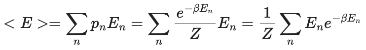 이 값은 분배함수를 통해 구할 수 있는데, 어떻게 분배함수 Z로 평균 에너지 <E>를 구할 수 있는지 알아볼게요.