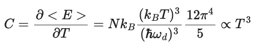 이렇게 T³ 에 비례하는 결과가 나오게 되어서 저온에서의 비열이 T³ 에 비례한다는 관계를 수식적으로 얻게 되어요.