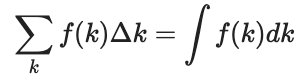 리만 합을 이용하면 불연속적인 값을 다음과 같은 적분 형태로 바꿀 수 있어요.