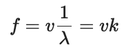 이 식을 진동수에 대해서 정리한 뒤, 파장 λ 대신 파수 k 를 써서 나타내면