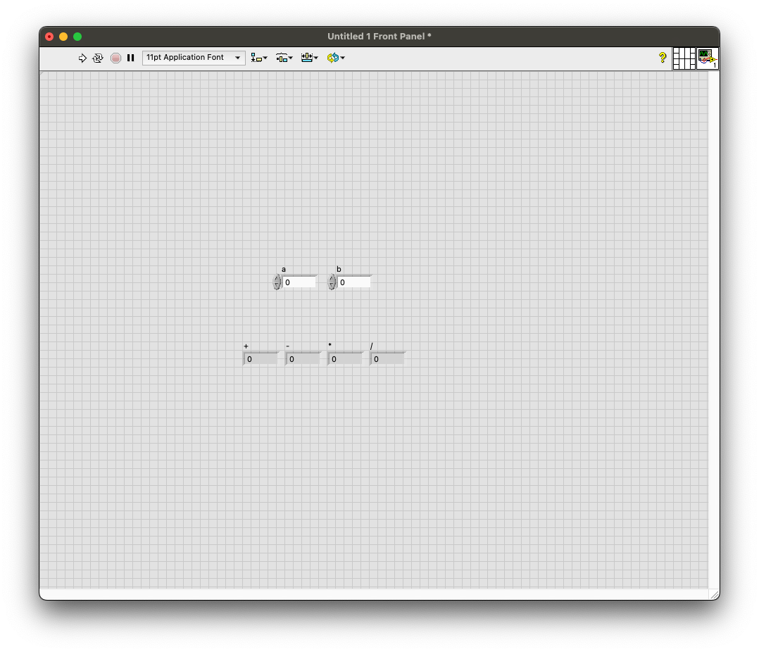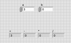 프론트패널로 돌아와서, a와 b에 적절한 수를 넣어주고,