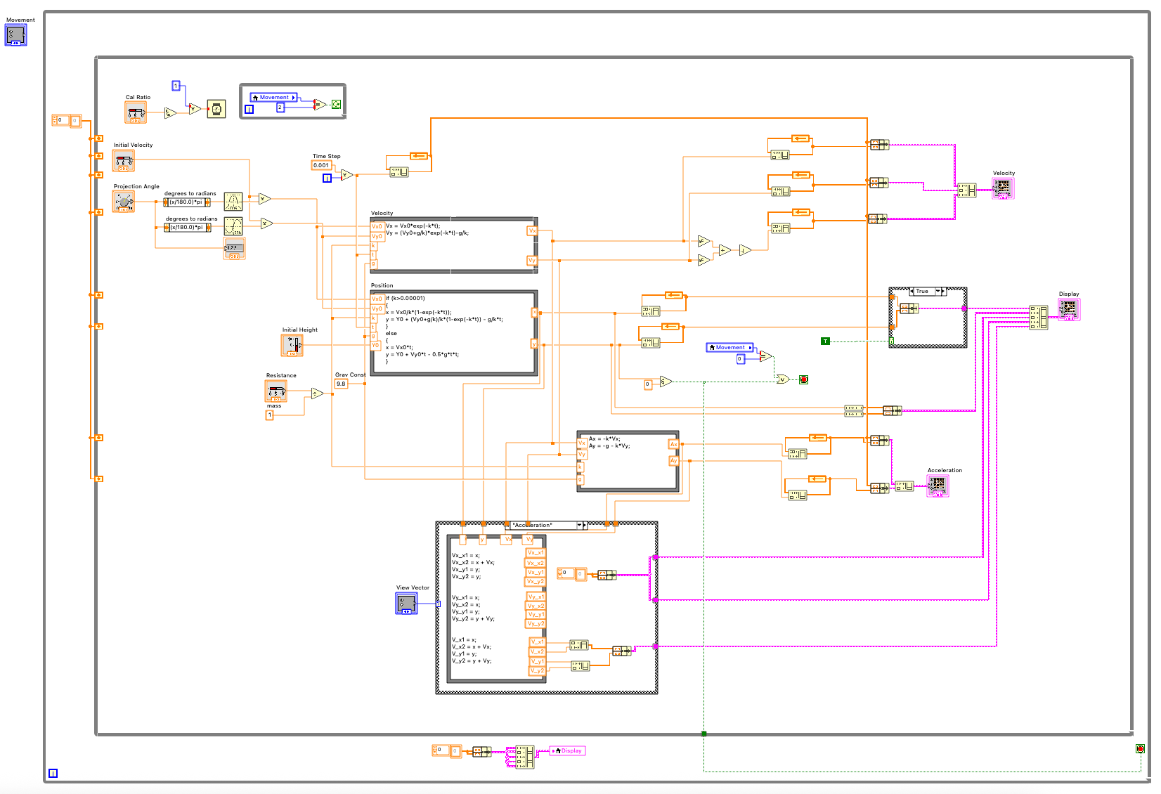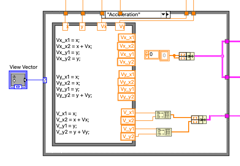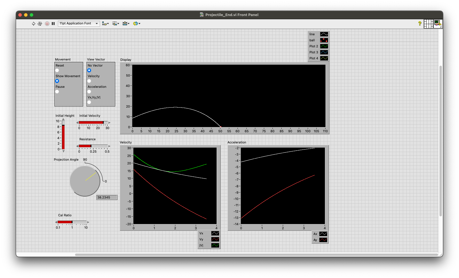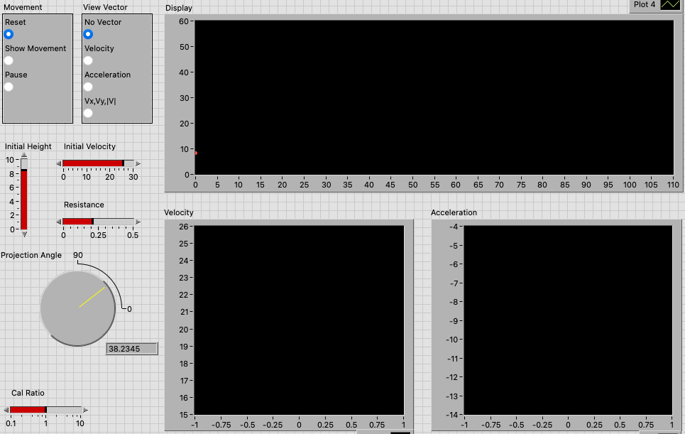Acceleration 을 선택할 경우 현재 가속도를, Vx Vy |V| 를 선택할 경우 속도 벡터와 X 및 Y 성분을 보여주도록 해야 해요.